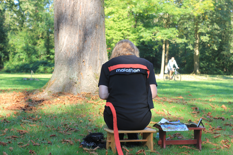 Kirsten Kötter organises the Malathon: a participatory artistic event with a competitive sporting character. The Malathon is modelled on the marathon and has 42 stations at 42 trees, instead of 42 kilometres in length like the marathon. At each tree, a watercolour protocol is created in public and then exhibited on site.